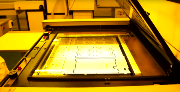 在第2步中,制造商將創建PCB的內部工作。 這從一個巨大的膠片印刷機開始,它創建了PCB的頂部和底部內層圖像。