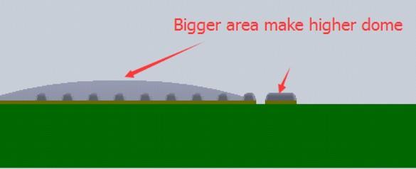 結果,由于液體張力,較大面積的焊膏將產生比較小面積更高的圓頂。