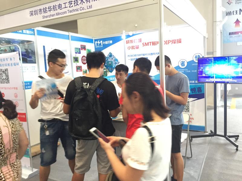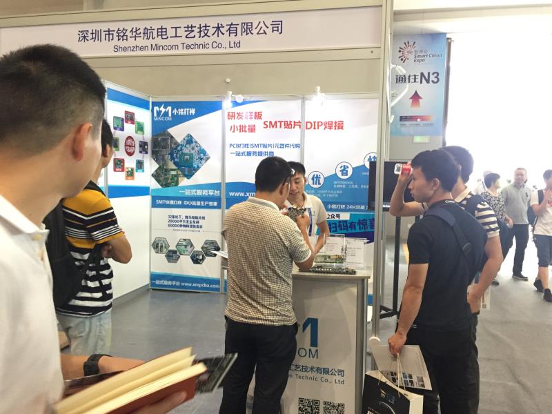 為更好地彰顯“快速、便利、貼心、賦能、利他”之企業(yè)核心精神,2018中國(guó)國(guó)際智能產(chǎn)業(yè)博覽會(huì)將于8月23日至25日在重慶國(guó)際博覽中心舉行,主題是“智能化:為經(jīng)濟(jì)賦能、為生活添彩”。銘華航電有幸與2018中國(guó)國(guó)際智能產(chǎn)業(yè)博覽會(huì),N1館,展位號(hào):N1131 ,宣導(dǎo)“小銘 讓研發(fā)更簡(jiǎn)單”理念以更多、更好地服務(wù)全球需要SMT貼片加工的各類客戶,參展期間參訪者絡(luò)繹不絕,熱心關(guān)注、積極咨詢并紛紛掃碼關(guān)注微信公眾號(hào),部分現(xiàn)場(chǎng)即注冊(cè)為公司會(huì)員客戶。